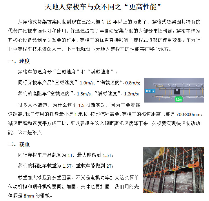 天地人穿梭車與眾不同系列之“更高性能”